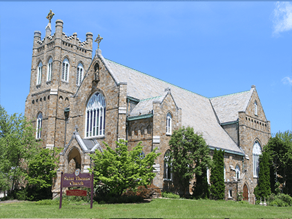 On December 24, 1868 incorporation papers were signed for the new parish and in 1871 the first resident Pastor, Father Eugene Gaffney was appointed. The foundation for a church had been constructed, and Father Gaffney finished the original church which was located on the east slope of a hill convenient to the Railroad Station. Bishop Galberry of the Hartford Diocese dedicated the Church on October 15, 1876. On November 30, 1884, Father Michael J. McGivney was appointed the second resident Pastor of Saint Thomas. By the turn of the century, Father Daly and his successor Father Timothy O’Brien realized the need for a new and larger Church. Land was purchased at the intersection of East Main and North Main Streets in the center of Thomaston. In 1905, under Father John H. Walsh’s direction, construction of the new church began. The cornerstone was laid amid a joyous community celebration on May 6, 1906, and dedicated on May 31, 1908. The Church structure still serves our Parish family.